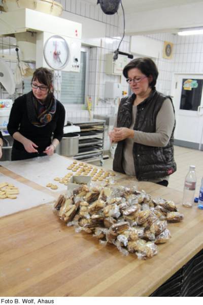 Liebevoll waren Frauen, Männer und Kinder am Werk, um die kleinen durchsichtigen Tütchen mit den gerade selbst gebackenen Plätzchen zu befüllen.