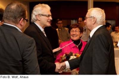 Genau in diese Kerbe zielte auch der Fraktionsvorsitzende Thomas Vortkamp: "Unser Haushalt wäre ausgeglichen, wenn uns nicht die drei Millionen fehlten, die wir jetzt nicht mehr vom Land bekommen, und das bleibt die nächsten Jahre auch so." Dennoch wollte er nicht schwarz malen, sondern lobte die Anstrengungen des heimischen Handwerks und der Industrie, die zu nur 2,9% Arbeitslosigkeit und damit quasi zur Vollbeschäftigung in Ahaus geführt hätten. Bezogen auf die Politik im Ahauser Rat zeigte er sich sehr zufrieden mit der konstruktiven Zusammenarbeit mit dem Koalitionspartner FDP und wünschte, dass das in nächster Zukunft bei den anstehenden Projekten wie Kulturzentrum, Stadthalle, Einkaufszentrum anstelle des Rathauses 2 u.s. so bleiben möge. Vortkamp stellte auch innerparteilich Negativem Positives gegenüber, wenn er darauf hinwies, das man gegenwärtig dabei sei, durch Verbesserung der Kommunikation zwischen den Ortsverbänden und Stärkung der Mitgliederbeteiligung bei anstehenden Entscheidungen die Attraktivität der Partei zu steigern.