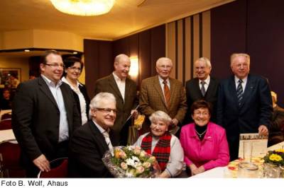 Die Mitgliederehrung bekam in diesem Jahre einen besonderen Akzent: Alle Geehrten sind seit 40 Jahren Mitglieder der CDU. Ihnen sprachen die Herren Tenhumberg und Vortkamp und die Vorsitzende Kreuziger deswegen besonderen Dank und Anerkennung aus und überreichten Präsent und Urkunde.