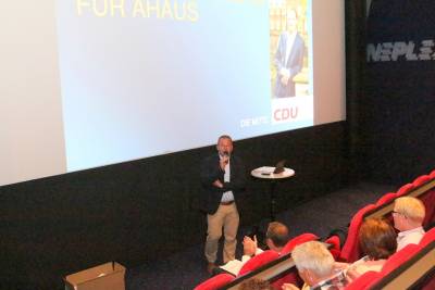 Ein CDU-Mitgliederabend im Kino - mal was anderes! Vor vollen Reihen im Cinetech stimmte sich die CDU gemeinsam mit ihrem Bürgermeisterkandidaten Christoph Almering auf den anstehenden Wahlkampf ein.