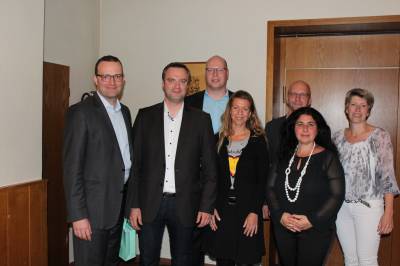 v.l.n.r. Jens Spahn, Michael Räckers, Christian Rudde, Rebecca Brüggemann, Norbert Buss, Carmen Esposito-Stumberger und Gabi UppenkampAuf Einladung der CDU-Verbände Ahaus und Legden diskutierten die Podiumsgäste Rebecca Brüggemann (ehrenamtliche Integrationslotsin aus Asbeck), Carmen Esposito-Stumberger (Projekt Integrationslotsen Ahaus), Norbert Buss (BBS/BOZ Ahaus) und Jens Spahn (Parlamentarischer Staatssekretär beim Bundesminister der Finanzen), über die Herausforderungen der Integration. Sie sprachen sehr leidenschaftlich über Ihre Erfahrungen und Ansichten aus der Flüchtlingshilfe. Nach einer kurzen Vorstellungsrunde erhielt der aus Guinea (Westafrika) stammende Flüchtling Thierno Diallo die Möglichkeit seine Geschichte zu erzählen. Auf Deutsch erklärte er, dass seine Familie verfolgt wurde und ihm das gleiche Schicksal drohte. Daher blieb ihm nur die Flucht nach Europa. Nach ein paar Jahren in Spanien, lebt er seit 2014 in Deutschland, genauer in Asbeck. Der lebensfrohe Thierno Diallo hatte immer das Ziel die Schule zu besuchen um später den Menschen einmal etwas zurückgeben zu können. Mit der Hilfe der Integrationslotsen ist ihm das nun auch gelungen. Während Frau Brüggemann und Frau Esposito-Stumberger feststellen konnten, dass diese Menschen auch etwas in unsere Kultur mitbringen und die Initiative zur Integration besonders von der Seite der Flüchtlinge ausgeht, lenkte Norbert Buss auch einmal den Blick zurück und verwies auf die erste Einwanderungswelle ab den Fünfzigerjahren, ohne die wir den Wiederaufbau und die heutige wirtschaftliche Stärke wohl nie erreicht hätten.