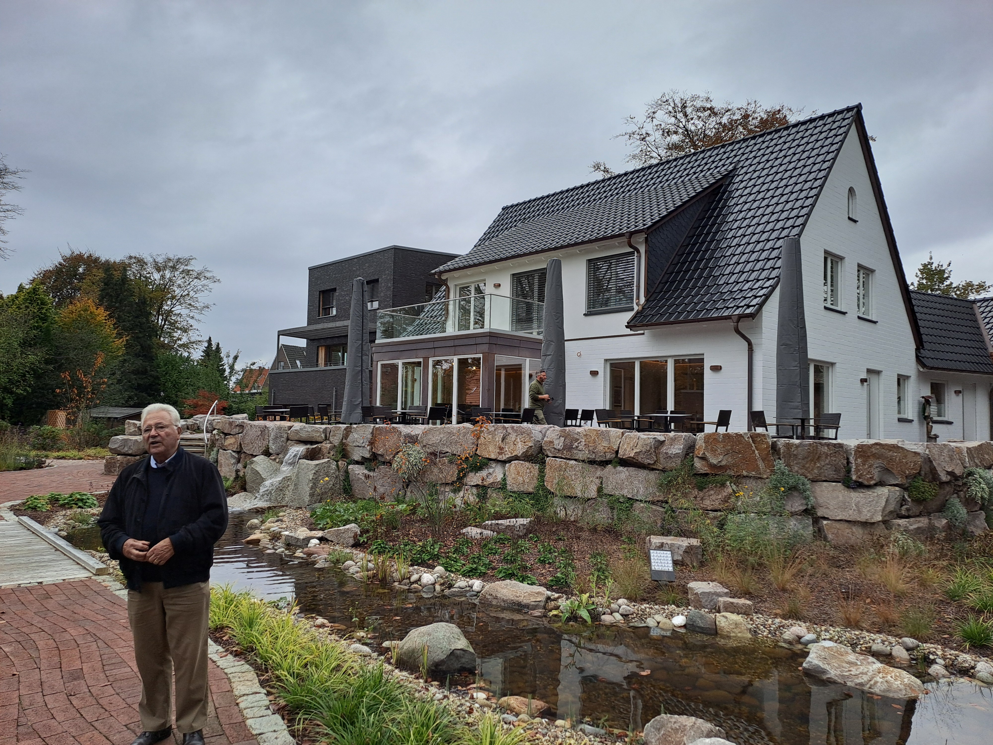 Die Teilnehmer wurden durch einige Wohnungen und durch die parkähnliche Gartenanlage mit vielen verschiedenen Stauden und Sträuchern, die zu jeder Jahreszeit blühen, geführt. Dr. Gerl erläuterte den Teilnehmern die Entstehung und den Bau des Mehrgenerationenhofes und beantwortete Fragen. Aloys Schmeing – Vorsitzender der Seniorenunion – bedankte sich bei Dr. Gerl und seinen Mitarbeitern für die informative Besichtigung des Mehrgenerationenhofes.