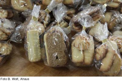 Liebevoll waren Frauen, Männer und Kinder am Werk, um die kleinen durchsichtigen Tütchen mit den gerade selbst gebackenen Plätzchen zu befüllen.