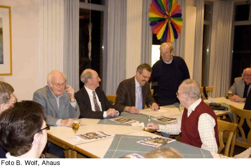 Bei der ersten Veranstaltung der CDU-Senioren-Union im Stadtverband Ahaus in diesem Jahr, die am Donnerstag, den 3. Januar 2008, im Saale Möllers am Wall mit 40 Teilnehmern stattfand, konnte der Vorsitzende Heinrich Laing den Ahauser Bürgermeister begrüßen. Büter erläuterte zunächst die nicht nur nach seiner Meinung positive Entwicklung der Stadt, die sich deutlich an der vermehrten Zahl der Gewerbeansiedlungen und in der gestiegenen Nachfrage nach Gewerbeflächen, an dem Rückgang der Arbeitslosigkeit auf nunmehr 4 %, an den vermehrten Steuereinnahmen mit der Möglichkeit des Schuldenabbaus und an der Höhe und Qualität der in den letzten Jahren durchgeführten Investitionen festmachen ließe. Das habe zum Ergebnis, dass der Kämmerer trotz einer Erhöhung der laufenden Kosten um etwa eine Million Euro und trotz der hohen Kosten der angegangenen Bau- und Sanierungsmaßnahmen einen ausgeglichenen Haushalt vorgelegt habe, der, wenn die politischen Gremien entsprechende Beschlüsse fassten, mit einem Plus von ca. 100.000 Euro abschließe. Ausgabensteigerungen erzwingen die Veränderungen im Kita-, Kindergarten- und Schulbereich, der Neubau des Kombibades, Sanierung und Erweiterung des Klärwerks und des Kanalnetzes, der Bau der Nordumgehung und die Ausweisung weiterer Wohn- und Gewerbeflächen.