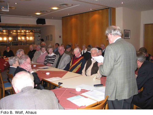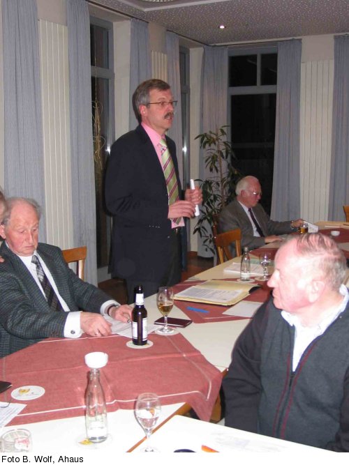 Der für die bei der Mitgliederversammlung am Mittwoch, den 8. Februar 2006, in der Gaststätte Möllers am Wall anstehenden Vorstandswahlen gewählte Versammlungsleiter, der ehemalige Landrat und Landtagsabgeordnete Franz Skorzak hat mit klaren Worten die vom Vorstand, insbesondere vom Vorsitzenden Heinrich Laing in der Vergangenheit geleistete Arbeit gewürdigt und damit auch wesentlich zu den einstimmigen Wahlergebnissen beigetragen.