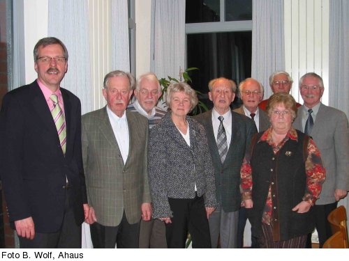 Bürgermeister Felix Büter, Vorsitzender Heinrich Laing, stellvertretender Pressereferent Walter Pfeifer, stellvertretende Vorsitzende Mechthild Schütte, stellvertretender Vorsitzender Bernhard Heying, Schriftführer Arno Teschner, stellvertretende Schriftführerin Renate Morawetz, Ehrenvorsitzender Bernhard Sicking und Pressereferent und Internetbeauftragter Bruno Wolf.
