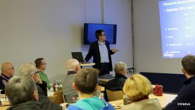 Mit einer Präsentation eröffnete der Geschäftsführer den Abend. Den Gästen gab er einen Überblick über die Geschichte des Unternehmens, das schon 1964 in Ahaus gegründet wurde und zunächst unter dem Namen Atomac firmierte. Seit dem haben sich Unternehmen und Produktion gleichermaßen weiterentwickelt, sodass Flowserve heute nicht bloß ein Global Player, sondern auch Maktführer auf dem Gebiet der Industriearmaturen ist.