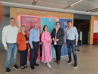v.l.n.r.: Johannes Maus, Robin Becht, Aloys Schmeing, Sabrina Salomon, Martina Schrage, Helge Benda, Michael RäckersZuvor hatte Helge Benda die Wichtigkeit der Europawahl begründet und erinnerte an die Gründerväter der EU. Er stellte weiter fest: Die EU befindet sich womöglich in der entscheidendsten Phase ihrer 70-jährigen Geschichte. Die Fülle und Schwere der Krisen, Herausforderungen und Umbrüche, mit denen sie sich gleichzeitig konfrontiert sieht, ist beispiellos. Russlands Angriff auf die Ukraine hat schonungslos offengelegt, dass Europas Sicherheit und Verteidigung völlig neu konzipiert werden müssen. Sowohl militärisch als auch wirtschaftlich muss die EU massiv investieren, um kritische Abhängigkeiten zu verringern. Hinzu kommt: Der Kampf gegen den Klimawandel erfordert noch größere Anstrengungen, als wir bisher in Kauf zu nehmen bereit waren.