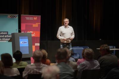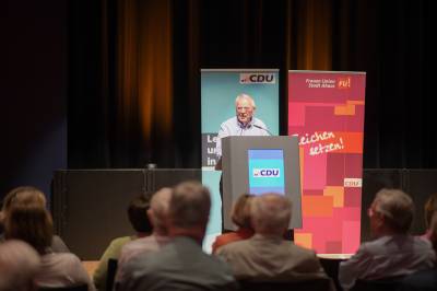 Nach den Grußworten vom Bundesgeschäftsführer der Seniorenunion Robin Becht, dem Kreisvorsitzenden der Seniorenunion Johannes Maus und dem Vorsitzenden der Seniorenunion Ahaus-Heek-Legden Aloys Schmeing diskutierten auf dem Podium unter Leitung vom CDU Fraktionsvorsitzenden Dr. Michael Räckers, der Landesvorsitzende und stellvertretende Bundesvorsitzende der Seniorenunion Helge Benda, die beiden CDU Kandidatinnen für das Europaparlament Sabrina Salomon und Martina Schrage für das Münsterland über die Bedeutung der Europawahlen in Anbetracht weltweiter Konflikte.