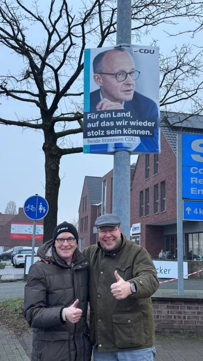Am Samstag haben wir im gesamten Stadtgebiet den Bundestagswahlkampf sichtbar eingeläutet und plakatiert. Mit vereinten Kräften klappt das zügig und nach dem Jahreswechsel tut Bewegung an der frischen Luft ja auch echt gut :-) . Nun heißt es: kämpfen und werben für eine starke CDU, denn nur mit einer starken CDU und klaren Verhältnissen im Bundestag wird es einen Wechsel und eine bessere Politik für Deutschland geben!